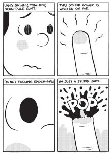 Vredelo bi putem ovog stripa (i/ili serije, mada moram naznačiti da je adaptacija serije razblažena, a utoliko i bolja verzija stripa) osvrnuti se na poteškoće koje sa sobom nosi život jednog neiskusnog superheroja. Ili možda ipak ne superheroja, već osobe sa natprirodnim moćima, preciznije telekinezom. Tinejdžerske osobe. Naravno, ne bilo kakve tinejdzerke, već, kao i uvek suočeni smo sa večitim toposom drugačije devojke od svojih vršnjaka: slušajući andergraund muziku, ne podnoseći pola sveta i najinteresantnije – opisujući ljude po mirisu.